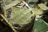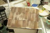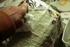 The third having just gone on a light brushing is done with downward brush strokes appling more of the glue. Once that is done a dab with some scrap tissue finishes the job. Now the wait for it to dry, and hopefully the peel off from the Clingfilm.