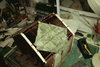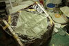 For tarps as in the past I use very fine tissue paper, the kind that is found in a shoe box. Used in conjunction with Clingfilm as a base. This of course stops any glue from falling on the model underneath. To make sure this didn't happen I put a larger sheet over the right hand roof, then another in the area where I wanted to apply the tissue. Mixing some PVA with a little water ( mainly to stop the paper from tearing) and adding a drop of Vallejo green primmer to add some pre colour.
