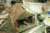 Today I had wanted to start on the corrugated sheet fitting, but needed to add some edge supports, so once these were glued and Han's overalls redone with a coat of mat varnish I set too and anointed the light shades with the pigeon poo ! just a very stiff brush dabbed in to some off white paint and very gently applied. Thanks Si :thumb2: