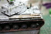 I've not touched the tracks. I used raw umber, black and burnt umber, along with a few dots of yellow and blue to give a greenish look , see above the side of the turret.