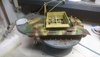 Spent a bit of time dodging the wind and rain yesterday. Got most of the tools and bits nailed on and after much agro got those rubber band tracks sort of on the way I wanted them.