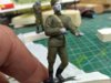 This is where I'm up to ,on the officer I cut some pewter and made a new belt, including a section of scrap PE for the buckle. Then taking some kitchen foil I cut a thin strap for the map case. Great fun trying to ca it to the case, after several attempts of gluing to my finger I managed to glue it to the tweezer