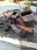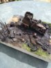 Then came the burnt areas around the car, so loaded with black and also a grey black sprayed the ground and the trees .After that a few minutes applied a few pinches of grey pigment
