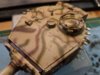Having arrived back in the UK yesterday and getting a little sleep (after getting home at 5am) I did a little bit on the Tiger. I started by painting in the missing patches of Zimmerit with the primer colour, then went over it with a very thin wash of deck tan. The idea is to give the impression of concrete that has broken or chipped off and left a little residue behind.