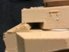 The ratio of the height of the turret as a whole (directly in front of the extension) to that of the rear extension is 1:0.63 on the real tank, and 1:0.67 on the model. In other words, the rear part of the turret appears to be too deep on the model, and needs a little removed from its underside.Comment