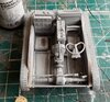 I masked up the edges of the hull, where the mudguards will join ( not fitted yet, as I want to paint the top track runs ), and sprayed the track units & the interior with grey primer. I'll break out the small brushes, for the interior detailing, which may take several attempts/touch ups. I may start dry fitting the upper bits, to actually work out what you actually will be able to see through the open hatches., and concentrate the detail painting in those areas. ( I've just noticed, I haven't added the battery, yet )