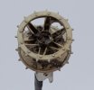 The idlers, with a build-up of textured acrylic mud between the spokes.