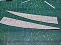 Taking the dimensions from my drawings, I drew out and cut out a Left & Right side, marking out the riveted strenthening strips and frames. These are on both sides of the bridge and are in fact sided and not mirrored. All told there will be eight (8) of these sides built. No! I am not going to make you suffer from all eight, but will show the construction of just two of the sides.