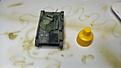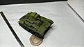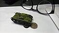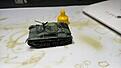 Colour used was a mr hobby aqueous paint im sure the jar said ww2 russian green (if anybody wants it say and I'll come back with the jar number). Jars of paint so much more convenient stick your badger mixer in whizz it up job done you KNOW its mixed all that plastic bottle shaking till the little ball starts rattling wrist repetitive strain injury i also stick it in a varnish shaker but are you really sure its mixed as well as the jar paint ,decanting from the jar is not a problem I use a little paint spoon/stirer straight into the AB cup. I'll return when I've blocked in the tracks wheel rubbers tools n bits. All good fun so far left it under the gentle little bit of warmth of the lamp so as it should be OK if I fancy a go a bit later. DaveAttached FilesComment