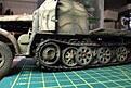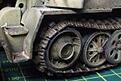 I am happy with the running gear. Hopefully you can make out the dirt on the chassis. Just for interest I painted the idler red oxide to show a replaced wheel, to this end the wheel rubber has not been distressed.