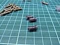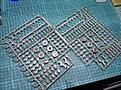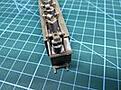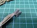 Next the cross plates were inserted inbetween the side frames one at a time, hel with tweezers and turned and fitted into the slots, now held with a finger and thumb on the outside of the frame while cement was run into the join. The the rest of the plates were positioned and glued.