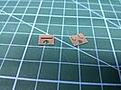 Last of all push the wheel axle through the hole in the spring and the suspension arm, add a drop of cement into the hole in the opposite wheel and place on the axle. But beware there is a 'key' slot and 'key' on the wheels...