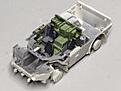 One of the first construction stages was to add the suspension units, which are moulded as four assemblies that clip into place. Whilst this makes life easy it does leave a lot of wobble, and the clips protrude into the drivers area, where they would be visible: