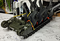 it's been said already - but wash the rubber band tracks in warm water & washing up liquid - realy swish them around - rinse in clean water & air dry ( overnight! ). This will allow paint to stick - it'll never be as strong as paint on ordinary polystyrene, but gives you a fighting chance! I normally prime my tracks with a mix of earth brown, with just a touch of gunmetal & allow a day or so to really dry before further work. I suspect every modeller has his own technique, you just have to choose the one that works for you!