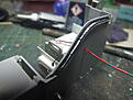 I have added some detail to the inside of the battery compartment lid. My reference pic shows a pocket for a book/wallet. This was made from brass sheet to this an eyelet was soldered on the strap itself is made from 2part green putty and passed through the eyelet and another eyelet to form the strap. Punched rivets were added to the strap. I will make the wallet later and add it in. Finally punched rivet detail was added in various places. The white filled ejector marks look worse than they are.