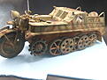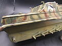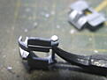 I have spent the last couple of evenings cleaning up the track links. the pads have all been damaged to reflect wear and tear and a lot of flash removed. The links have also received a lot of clean up with a lot of flash ejector marks and worse of all the track pin heads were very badly moulded they didn't even look like bolts rather just lumps. So they had to be removed from 84 links and new bolt heads punched to replace them so altogether 168 lumps removed and replaced. Still that is the joy of modelling. The tracks are assembled and will be painted tomorrow.