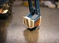 Bucket refinements were not without mishap.........while cutting the bottom off the bucket the saw bound up and a huge chunk of plastic snapped off the bucket front all the way up to the Mammoth teeth!!! After turning perfectly good air "Very" blue I proceeded to make repairs and carry on......here is the result.