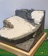 I also carved into the mountainside next to the uppermost wall to show damage by falling rocks and flowing water. Again, this still requires more work. The tops of the walls have yet to be worked on. They will have damaged top stones on which I need to make out of thinly sliced foam. Another far easier process with a foam cutter:tongue-out3: