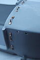 The work continues on the side car. The boot lid was added. Next the lid handle was fabricated as the kit offering was just a blob of plastic. Also in the picture you can see I have added the pop studs for the rain cover. These were made from a punched disc of pewter and then having a larger headed pin pushed through the disc.