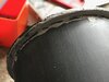 the idea is that it will key to the tubing and score marks with the purpose of making it so that the base will not fall off and deposit the sand on the carpet