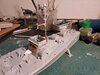 Wires for the mast were fun. Especially as my CA glue is rather old and thick. And dont stick! Added a few grab rails and bits here and there. Drilled the exhausts and put a pipe in them.... The double cone thing hanging over the bridge is supposed to be wires, quite how that can be done has failed me..... 3 times.
