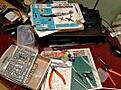 I put the box, with the lid open, to my left and leave the sprues in it, then just rummage through to find the one I need. This doesn’t work with those end-opening boxes Revell insists on using, though, so if/when I build a Revell kit, I usually put the sprues into a box from a previous kit instead.