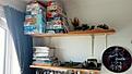I removed all the gardening tools I had worked alongside and gave the walls a lick of paint. Pics went up, new lighting, shelves, cabinet for the completed builds, homemade paint rack etc. All sourced from wood I already had and from B & Q.. I even treated myself to an oil heater! Now it looked like an actual hobby room.