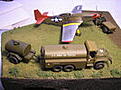 After the decal work on the fuel truck, trailer and jeep I've been having a look at how this is all going to look on the dio. Still have all the figs. to paint up and then stage the scene. I am not taken with the runway surface and will be trying a different topping.