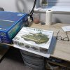 The driver for my Simca is slowly being painted. However, I made a bit of a mistake with the colours, as her jacket came out about the same colour as her skirt, so she now looks like she’s a WAAF or something, when the intent was obviously civilian. I’ll have to repaint one of the two, but not sure yet which colour to use. (She’s still loose, just posed in the car for the picture, so it’s not a problem to paint part of the figure again.)