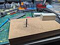 More progress on this base. I cut down some long woodscrews and inserted the smooth end into holes drilled the depth of the MDF