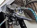 My compressor has made the journey from the shed. It looks in the way in this picture but the desk is so deep that I'm nowhere near it in reality. A hose runs from it to my regulator / water trap, mounted for easy adjustment.