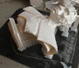 At first I inclined him backwards, to minimise supports on his front & back. This came unstuck from the build plate about 5 hours into the print. I then printed him upright - hoping that the plinth would keep him securely anchored. This one failed about 4 hours into the print!