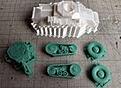 The Locust tracks printed on the Monoprice. Really more suited to resin printing! I slowed the print right down & each track took over four hours to print each. They are fragile & need a lot of clean up - I managed to break off part of the drive sprocket ( bottom right )