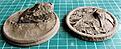 Both of these could be scaled up/down to suit most scales - difficult thing would be finding a figure in the correct posture. There are a lot of other plain bases, with cobbles, paving etc. , but they didn't seem much of a test to print out.