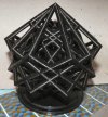 ID:	1215616 Difficult to describe, but it's a series of framework cubes, standing on one corner & rotated! It's 120mm high & 120 wide. It would have looked much better if I had some fancy filament, but black is what I have! I fully expected to find a ball of plastic wool this morning, after an all night print run, but more than pleased to see it coped.