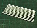 Start with a rectangle of thickish styrene. Stick lengths of 1.2mm styrene rod onto the base leaving 1.2mm gaps. My rods were 8cm long. You'll also need a wooden stick, kebab skewer, with a rounded, pointy end. Stick your jig to the bench with tape.