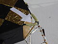 I had to fabricate the black bits on the legs and used gold thread for the foil ties on the legs. I dont know the actual names of these bits.
