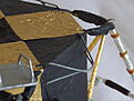 I am pleased with how the undulations in the foils and insulation have turned out. The landing gear feet were a problem. I was going to foil them but everytime I tried to push the foil into the foot the foil just kept tearing so they got a coat of gold spray instead. My patience ran out. Now onto the final stages of adding the cluster thrusters, radar/radio domes, ladders etc. Then I just have the 4 thruster deflectors to make and attach.