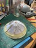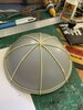 I worked out the pattern on the conical top by using the instructions and counting how many ribs across the pattern occupied then seeing the centre of the rectangle on the conical section aligned with the left hand edge of the lower 2nd stage stripe this gave me 16 ribs either side I then used some tape and cotton thread to form the shape which then gave me the positions for the remaining black patterns