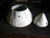 For those of you familiar with model rockets back in the day, a company called Centuri and of course Estes had their own 1/100th scale versions that flew. The LES tower was typically prone to breaking sooner or later. Same thing with the Mercury Redstone with it's tower. I've decided to address this issue by using magnets. The top of the CM is cut off here ready for the magnets to be installed.Comment