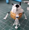 As you may be ware this kit is bereft of much detail at all and is woeful in some places so, after consulting images etc., I added the frameworks, piping, brackets etc. you see in the photos. I know that these are not truly accurate but I wanted to give a flavour of the real thing and add some much needed interest to what is after all a long white and black tube. By no means up to the standard of some members but I am pleased with the results prior to painting. The lunar module is 3.5 cm tall so added various dishes and antennae, step platform and handrails but called it quits on the 16 attitude adjuster rockets.