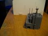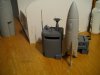 Three days! Three days I've spent carefully scratching machinery for the workshops and stuff for the control room ... and how much of it can you see? Naff all! That's how much you can see! To be fair though, the figures I've put in the control room are too tall, so they can't see out unless they're sitting down and I ain't given 'em no seats! At least the outside looks better for some additions. Not sure what I'm going to do with the rather silly refuelling thingies provided in the kit, they may get used for something but it won't include the fuel line - read electrical cable - supplied.