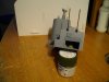 Of course, what that means is that it won't simp[ly sit in place on to of the main booster 'cos the angled tabs won't fit into the angled slots! I've had to use a bit of white tak to hold this roughly in place so you can see the problem