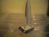 There's a small rocket pod which attaches to the top of the main booster rocket. 7 parts OK? Two fuselage halves, three fins, entry hatch and jet nozzle right? Easy peasy so no need to consult the instructions right? Less than 30 minutes it's all done, although I may drill out the cockpit windows (they're small anough to fill with Kristal Klear so no need to cut clear plastic).