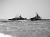 Here they are locking out into the Baltic Sea prior to a cruise up the Norwegian coast to the Northern Fjords. There they will make ready for a hazardous passage through the Denmark Straits and into the open Atlantic......