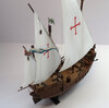 After completion of the kit, I purposely left off a long flag from the rear and four handrail mounted swivel canons. No other kits or builds indicated these were fitted, but with further research there were never any plans or drawings made of the ship, all the information is just a best guess. Swivel canons were in use in 1492 so Revell could have been right with including them in the kit. Attached are two photographs showing the additional flag and swivel canons. Also attached is a side view.