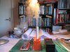 an here in this next pic its all ready to go as im just checking through the wireing as i dont want to blow it up as yet there is no inline 5amp fuse which it will have when its fitted proberly in the ship so the red main feed is not yet connected up an just layin on the 12volt batt an ive fitted a bit of plastic covering over that eletronics so no water can get into itComment