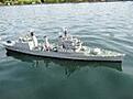 HI John yes lets hope she is ok will be up pond at 830 am before it gets too hot it will take me 20 mins to put her together an im just goin to sail her hull firstly to see how she behaves an look inside for leaks then if all ok i will fit on all the S/S an choppers on the flight deck an then the real test will begin many thanks for your thoughts