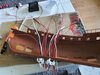 Once decided, I marked my holes on the pieces working backwards through the instructions. This took some care! I then measured the wire lengths needed plus 2 inches. All wires are loose, red for positive, except the mast wires which are the white ones - this is because it will be easier to make the wire look part of the mast if they won't conceal inside the mast (tbc).