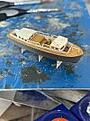 And finally just for good measure I redid the grey on the hulls outer sides & then the support stands in white prop shaft and rudder in grey and the propeller blade I left in the brass colour it was made from